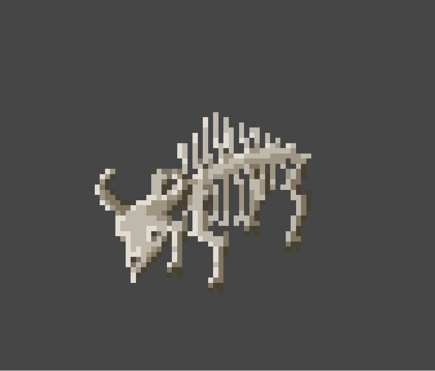 I worked on the skeleton bison enemy and the living gun enemies; I nearly finished the living gun but the skeleton bison is completely finished. I also worked on and finished the title screen artwork for the game with a couple different lighting options for it too.